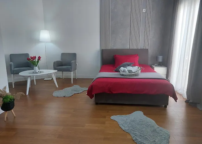 Aria Apartmani Podgorica van 28 m² is gelegen op 2 km afstand van Stadion Pod Goricom en op circa 20-minuten loopafstand van de Millenniumbrug. Dit appartement ligt op een paar stappen verwijderd van Osmanagic Mosque en biedt een terras waar gasten kunnen ontspannen en genieten van het uitzicht op de straat.